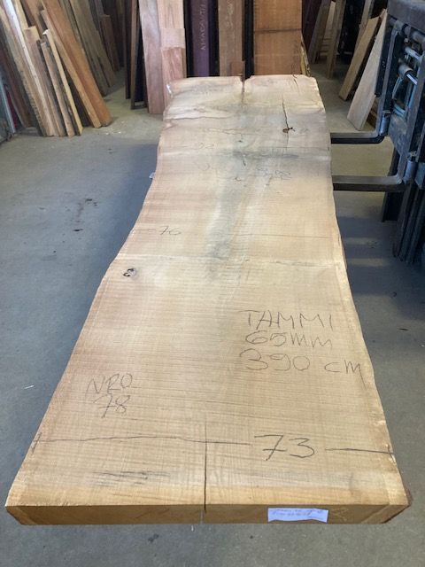 Tuotetiedot: Tammilankku, noin 3600 x 920 x 65 mm, konekuivattu, eurooppalainen tammi, luonnon reuna, halkeineisuutta, oksia, haara. Saat kuvissa olevan lankun.